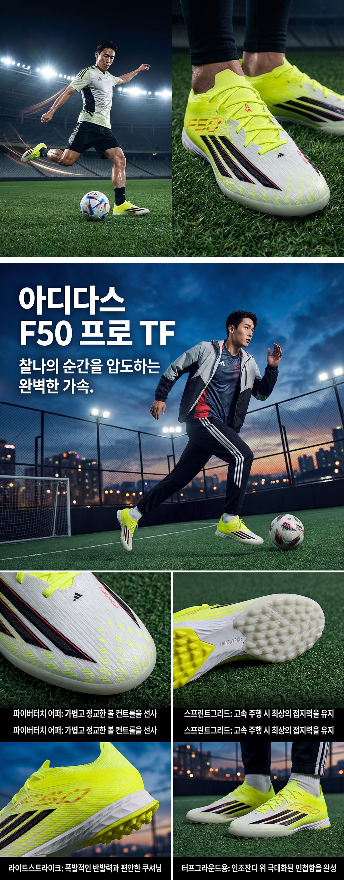 F50 PRO Turf Ã౸ȴ °æ±âÀå¿¡¼ ½ºÇǵ带 ÀçÁ¤ÀÇÇϰíÀÚ ÇÏ´Â »ç¶÷µéÀ» À§ÇØ Á¦À۵Ǿú½À´Ï´Ù. »õ·Î¿öÁø µðÀÚÀΰú Á¤¹ÐÇÑ ¿£Áö´Ï¾î¸µÀÌ Àû¿ëµÈ ÀÌ ½Å¹ßÀº ¼º´ÉÀ» °í·ÁÇÏ¿© ¼³°èµÇ¾ú½À´Ï´Ù. °¡º¿òÀº ¼Óµµ¸¦ ¿Ã¸³´Ï´Ù. ¾Æµð´Ù½º ¶óÀÌÆ®½ºÆ®¶óÀÌÅ©´Â ¹Îø¼º°ú ¼Óµµ¸¦ À§ÇÑ Ãʰ淮 Äí¼Å´×À» Á¦°øÇÕ´Ï´Ù. °¡º¿î ÆÄÀ̹öÅÍÄ¡ °©ÇÇ´Â °¡Àå ÇÊ¿äÇÑ ºÎÀ§¿¡ ÁöÁö·ÂÀ» Á¦°øÇϸç, ½Å¹ß²öÀº Á¶ÀýÇÏ¿© Æí¾ÈÇÏ°Ô Âø¿ëÇÒ ¼ö ÀÖ½À´Ï´Ù. ÄÄÇÁ·¹¼Ç ÇÍ ÅͳΠ¼³Æ÷¿Í TPU º¸°À縦 Àü·«ÀûÀ¸·Î ¹èÄ¡ÇÏ¿© ÁÖ¿ä ºÎÀ§¿¡ ´Ü´ÜÈ÷ °íÁ¤µÇµµ·Ï ¼³°èµÇ¾î °æ±â¿¡ ÁýÁßÇÒ ¼ö ÀÖ°Ô ÇØÁÝ´Ï´Ù. ƯÈ÷ °í¼Ó µå¸®ºí ½Ã ¾ÈÁ¤ÀûÀÎ º¼ ÅÍÄ¡°¨À» ¼±»çÇÏ´Â ½ºÇÁ¸°Æ®À¥ HD 3D ÅØ½ºÃ³¸¦ °æÇèÇØ º¸¼¼¿ä. °í¹« ¾Æ¿ô¼ÖÀº ÀÎÁ¶Àܵð¿Í ÀÎÁ¶±¸Àå¿¡¼ »ç¿ëÇÒ ¼ö ÀÖµµ·Ï °³¹ßµÇ¾î ¶Ù¾î³ Á¢Áö·ÂÀ» Á¦°øÇÕ´Ï´Ù. ¾Æµð´Ù½º ºê·£µùÀº ½Å¹ßÀÇ ¿Ï¼ºµµ¸¦ ³ô¿©ÁÝ´Ï´Ù.